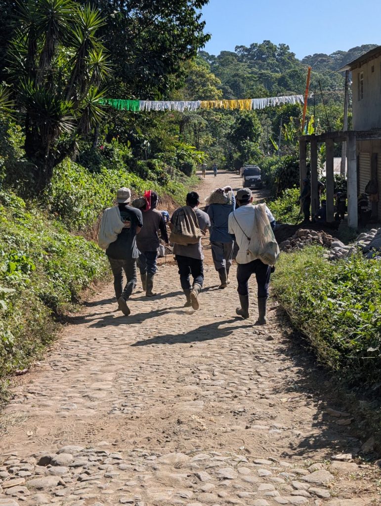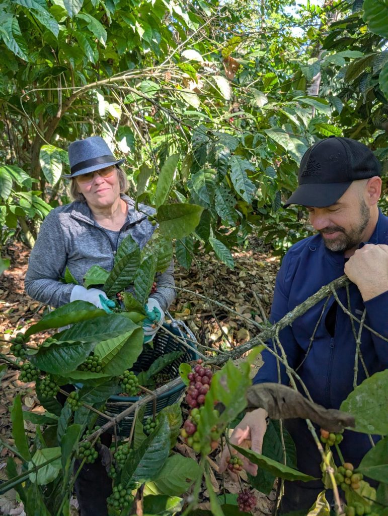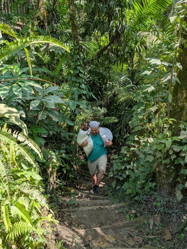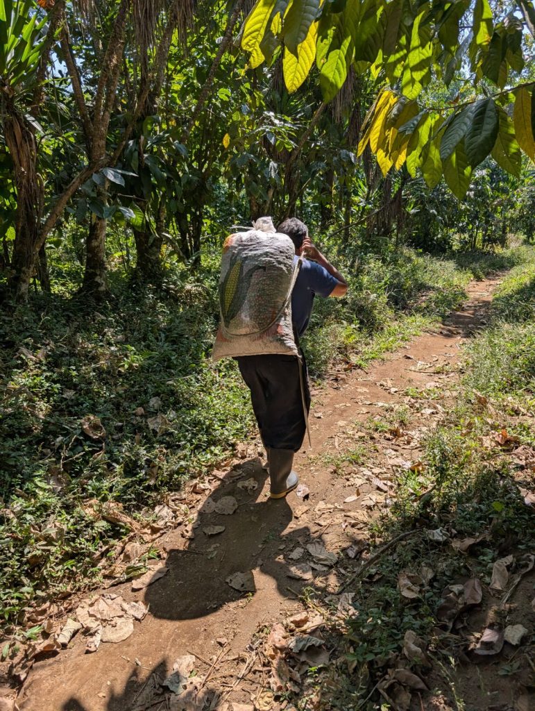 Nous participons à la cueillette du café avec Esteban, propriétaire d’une petite parcelle. Cette expérience nous fait prendre conscience des conditions de travail difficiles et l’importance d’acheter équitable.