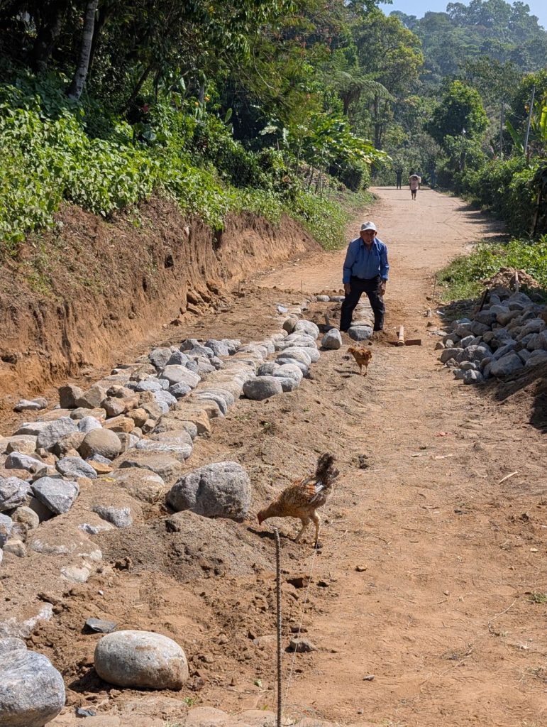 Le projet auquel tous les participants du séjour ont contribué financièrement consiste à la réparation de la route menant au village, en transportant des pierres, un effort physique exigeant.