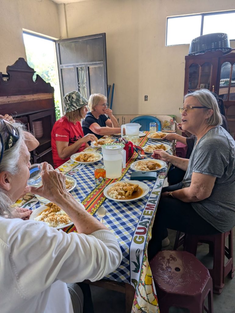 Comme à La Florida, tortillas, frijoles, poulet, plantain et œufs sont fréquents, mais nous découvrons aussi le thé de jamaica, l’atole à base d’avoine et les croquettes de pacaya. Ces repas nous permettent de créer des liens, avec les femmes souvent seules avec leurs enfants, les maris travaillants loin ou à l’étranger.