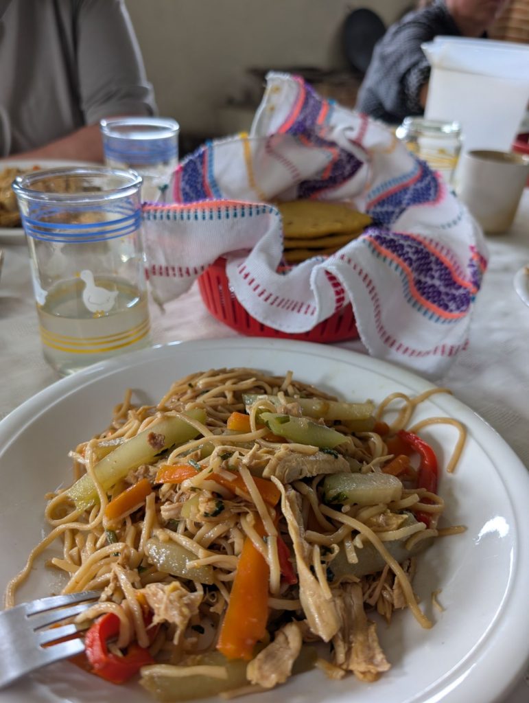 Les repas, préparés par deux femmes du village, nous surprennent avec un menu varié, malgré la présence constante de frijoles, tortillas, poulet et œufs.
