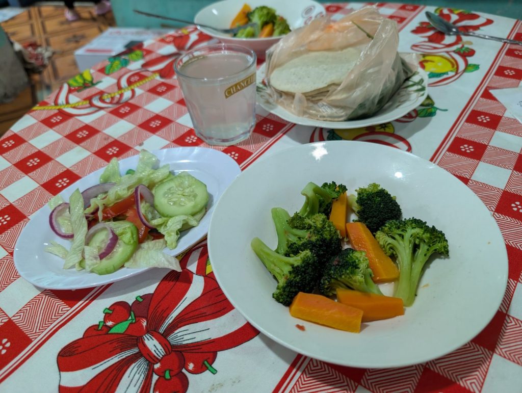 Légumes, torillas et un refres